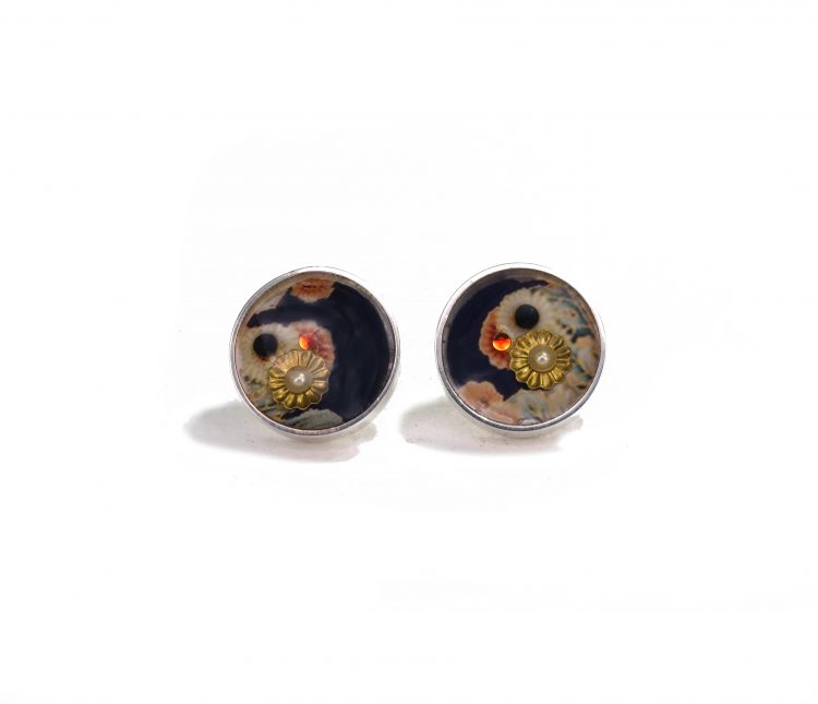 ARRACADES DE PLATA RODONES ESMALTADES AMB MOTIU DE FLORS JAPONESES
